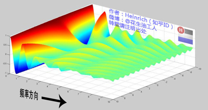 三维到二维的投影。欧拉公式所描绘的,是一个随着时间变化,在复平面上做圆周运动的点,随着时间的改变,在时间轴上就成了一条螺旋线。如果只看它的实数部分,也就是螺旋线在左侧的投影,就是一个最基础的余弦函数。而右侧的投影则是一个正弦函数。