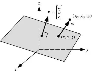 根据平面方程,平面的法向量 \((Normal Vector)\) 是 \(v=(a, b, c)\),设从平面上任意一点 \((x, y, z)\) 到 \((x_0, y_0, z_0)\) 的向量为 \(w\), 那么通过内积 \(dot\_product(w, v)\) 算出 \(w\) 到 \(v\) 的投影向量 \(p\),其大小就是 \((x_0, y_0, z_0)\) 到平面 \(a*x + b*y + c*z + d = 0\) 的垂直距离。 这里用到了向量模型的基本概念:法向量,投影向量,内积,整个问题解决过程简洁明快。