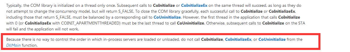 在 CoInitializeEx 底层会调用 LoadLibraryEx,原因同上。