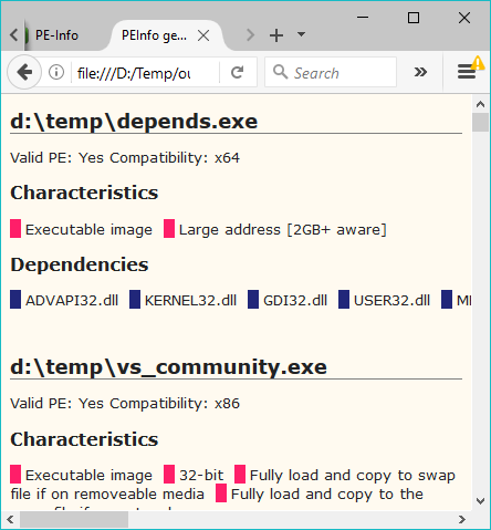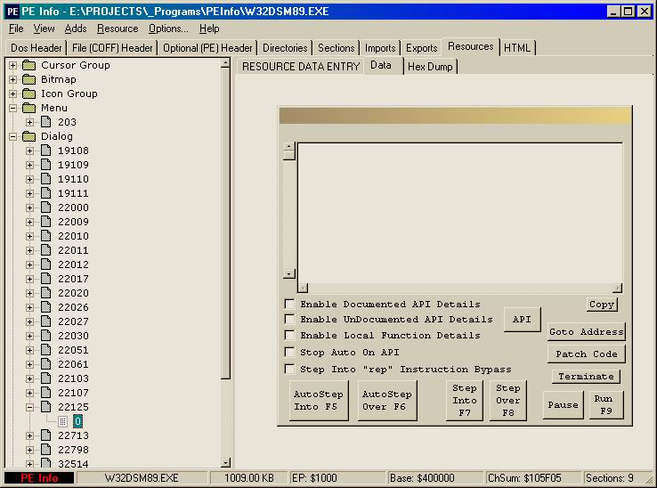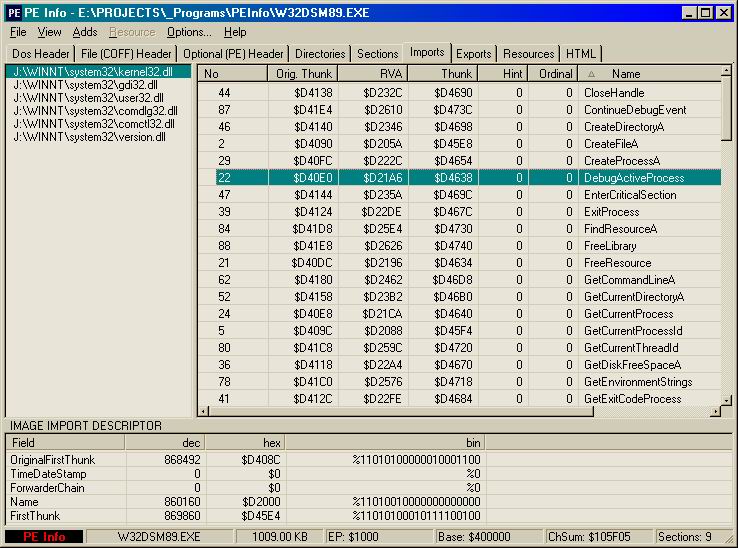 PEInfo is a program for a detailed analysis of the 32-bit EXE, DLL, OCX, BPL files and other produced according to Portable Executable File Format specification.