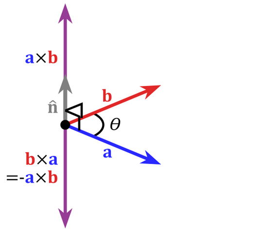 \[| \vec a \times \vec b | = |\vec a| \cdot |\vec b| \cdot \sin \theta\]