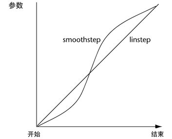smoothstep 函数与 linstep 函数的工作方式类似,不过其将在最小值和最大值之间的中间值附近更快地增加值。该函数使用最小值和最大值之间的 hermite 插值。