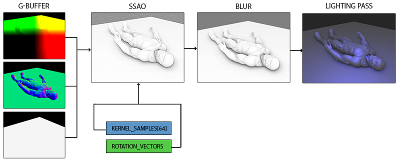 屏幕空间环境光遮蔽 (Screen-Space Ambient Occlusion, SSAO)。 在 2007 年,Crytek 公司发布了一款叫做屏幕空间环境光遮蔽 (Screen-Space Ambient Occlusion, SSAO) 的技术,并用在了他们的看家作孤岛危机上。