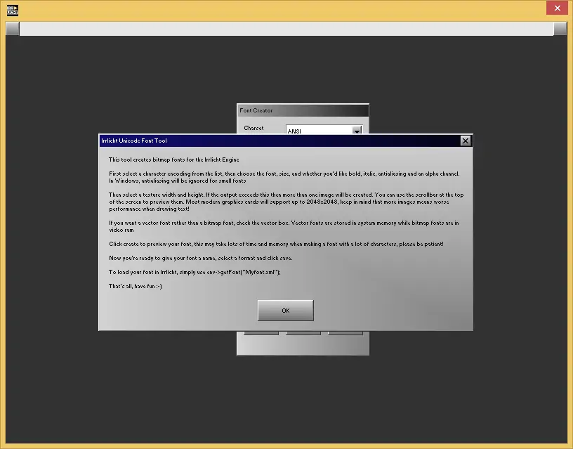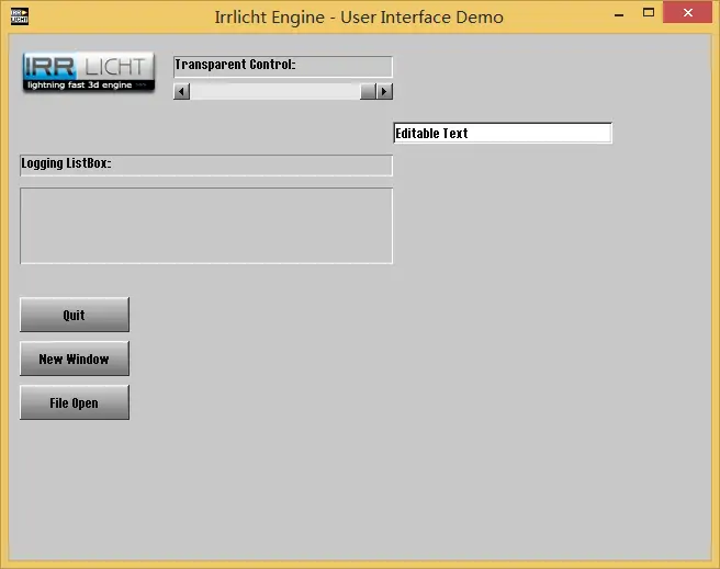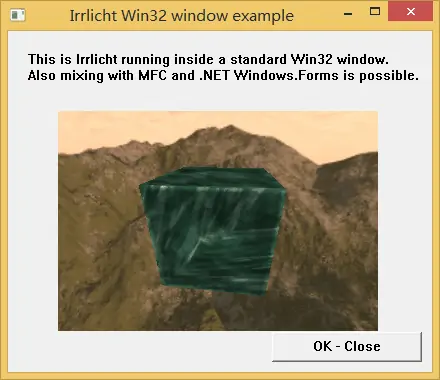 guienv->addStaticText(L"Hello World! This is Irrlicht with the burnings software renderer!", rect<s32>(10, 10, 260, 22), true);