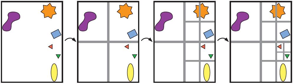 如在室内场景管理中有两个经常用到的层次体系:BSP(Binary Space Partitioning) 树,这是八叉树的推广,和包围体树 (Boundingvolume tree)。前者用于加速剔除,而后者主要用于碰撞检测。