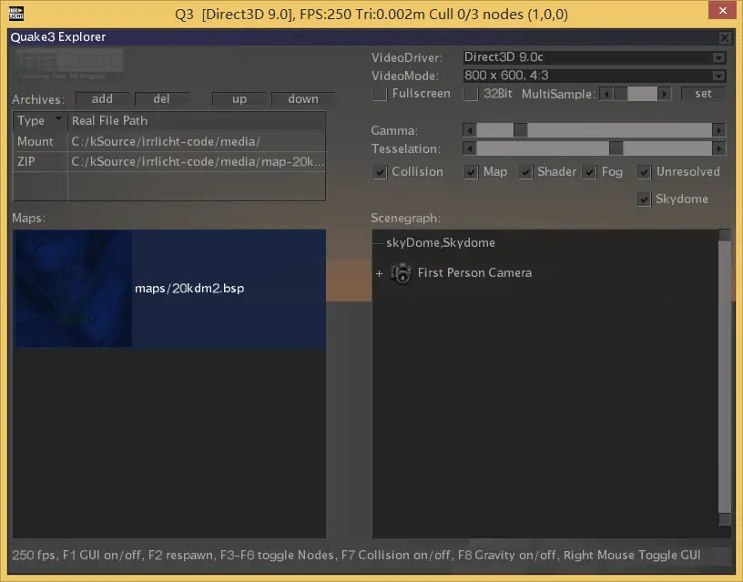 加载 Quake 3 map,创建 SceneNode 并优化渲染速度,创建可控相机位。
