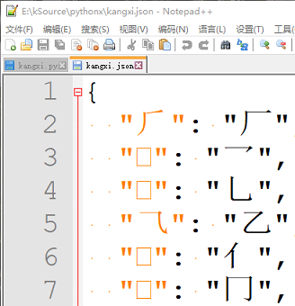 Unicode 中文字符集中存在两个极为相似的汉字但编码不同的情况,主要是因为康熙部首和扩展部首中存在和基本汉字相似的汉字。 看起来一样,实际编码是不一样的,而康熙部首很容易呈现乱码的情况(Chrome 能正常显示,Notepad++ 就显示乱码)。