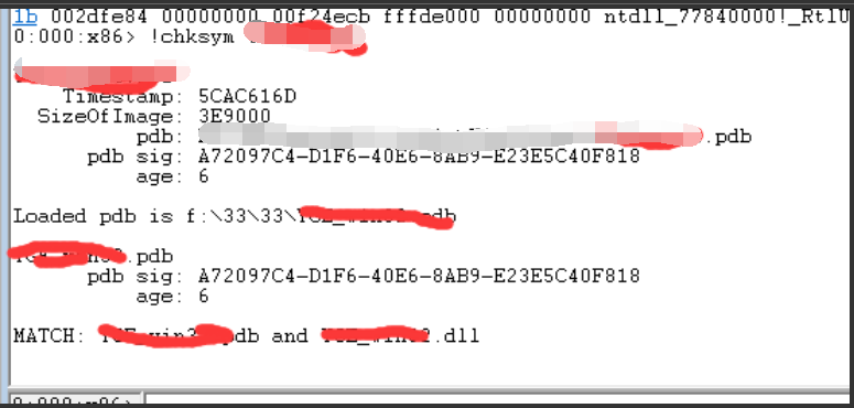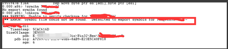 例用 Windows 调试工具集里的工具 symchk.exe symchk xxxx( 模块 ) /v /s .