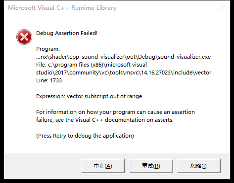 Debug 版本,vector 越界断言。