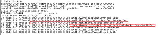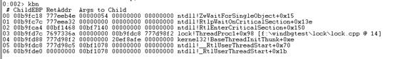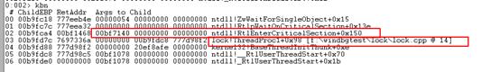 ~*kv ,输出所有线程!find stackntdll!RtlEnterCriticalSection ,查找哪些线程在等待锁