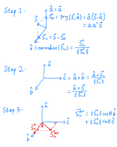 \(\mathbf{R}(\mathbf{n}, \alpha)=\cos (\alpha) \mathbf{I}+(1-\cos (\alpha)) \mathbf{n} \mathbf{n}^{T}+\sin (\alpha) \underbrace{\left(\begin{array}{ccc}