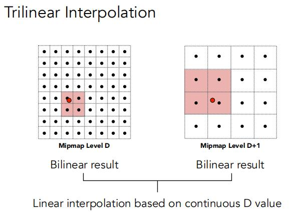 - 层与层之间再插值。 多 1/3 存储 ,Trilinear filtering: visualization of continuous D