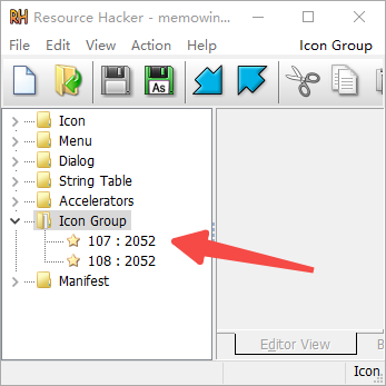 先要用 resourcehacker 看好要替换图标的 mask 是多少,比如:ICONGROUP,107,2052