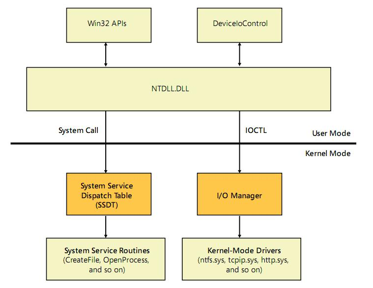 防御基于 x86 架构上的监控实现,基本是以 hook(inline hook) + 注册系统回调实现的;但在 x64 构架上,微软引入 Driver Signature Enforcement + Kernel Patch Protection(PatchGuard,简称 PG) 安全机制,杜绝第三方驱动在系统关键“驱动”中进行的内存修改。因为 PG 的存在,无法继续使用 x86 的 hook 方式实现更多行为的监控,只能使用系统提供的标准回调;x86 hook 的方式可将 SSDT + SSSDT 里涉及到的各函数调用都进行监控,基本上涵盖了系统上所有的行为,而系统提供的标准回调,只有进程创建 / 退出、模块加载、注册表相关、文件、对象回调,所以,导致了一些在 x86 上可进行防御的行为,在 x64 上无效(或实现方法与 x86 不同);