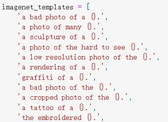 列出了使用的这 80 个 context prompts,比如有 "a photo of many {}" 适合包含多个物体的情况,"a photo of the hard to see {}" 可能适合一些小目标或比较难辨认的目标。