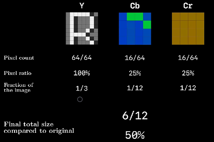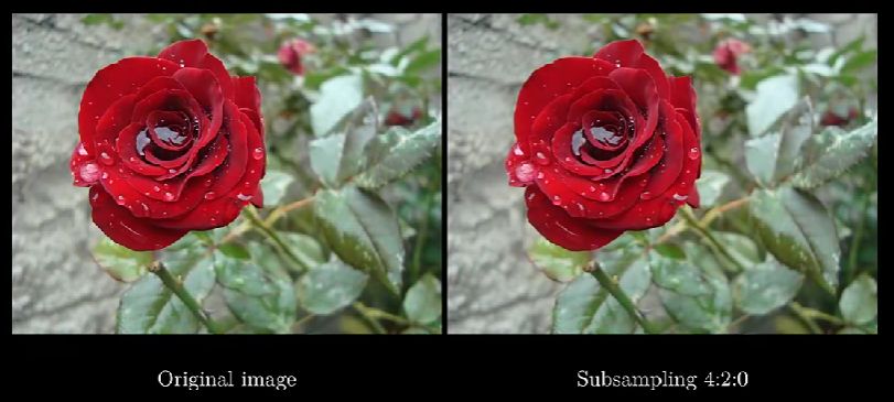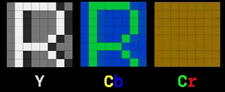 因此,我们可以将图像从 RGB→YCrCb 空间(Y:亮度,Cb:蓝色色度,Cr:红色色度),缩减 Cr 和 Cb 分量的采样数,而对于亮度 Y,则保留 0~255 等级,这个技术就叫做色度下采样,更常见的称呼是色度抽样。