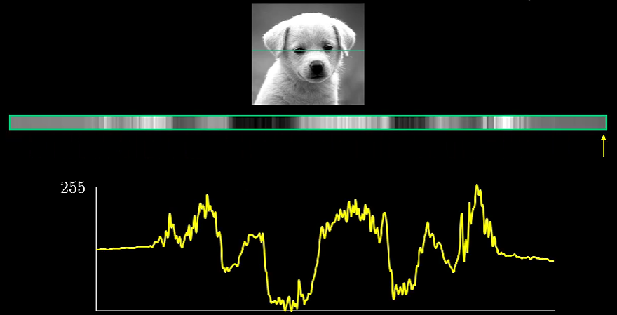 从信号处理角度看,数字图像其本身就是一种信号,那可不可以从这个角度剖析图像自身蕴含的信号,进一步抽取我们尽可能需要保留的信息,而去除一些无关紧要的其他信息呢?答案是肯定的。首先我们抽取图像的一行,