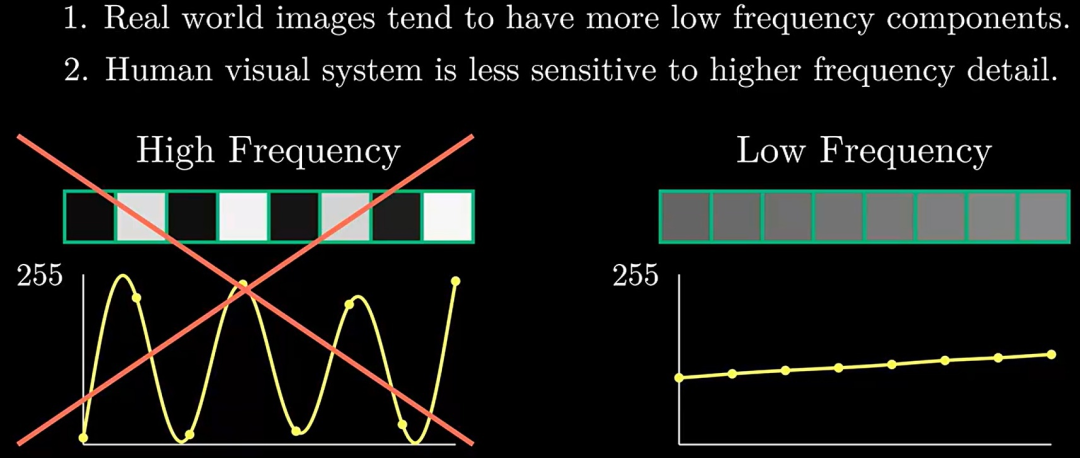 通过大量的视觉实验,我们知道,人类视觉对高频信息并不那么敏感: