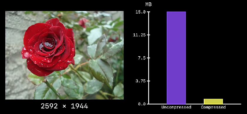 下面展示的是一张 2592x1944(所谓的 2K 分辨率)图像,在没有经过任何压缩和利用 JPEG 技术后的文件大小: