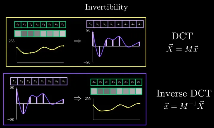 需要注意的是,DCT 变化是可逆的,对应如下图所示: