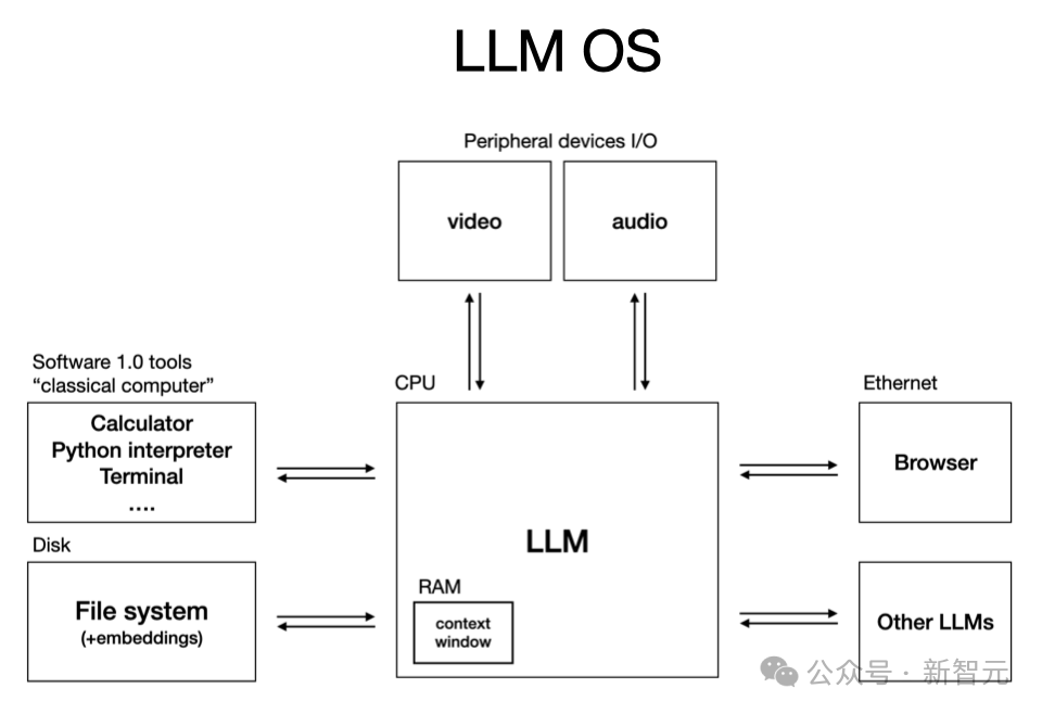 AI 就像新型计算机,LLM 像新的「CPU」。 上下文窗口相当于内存;而整个 LLM 则负责在这些资源之间协调内存与计算,以解决问题。