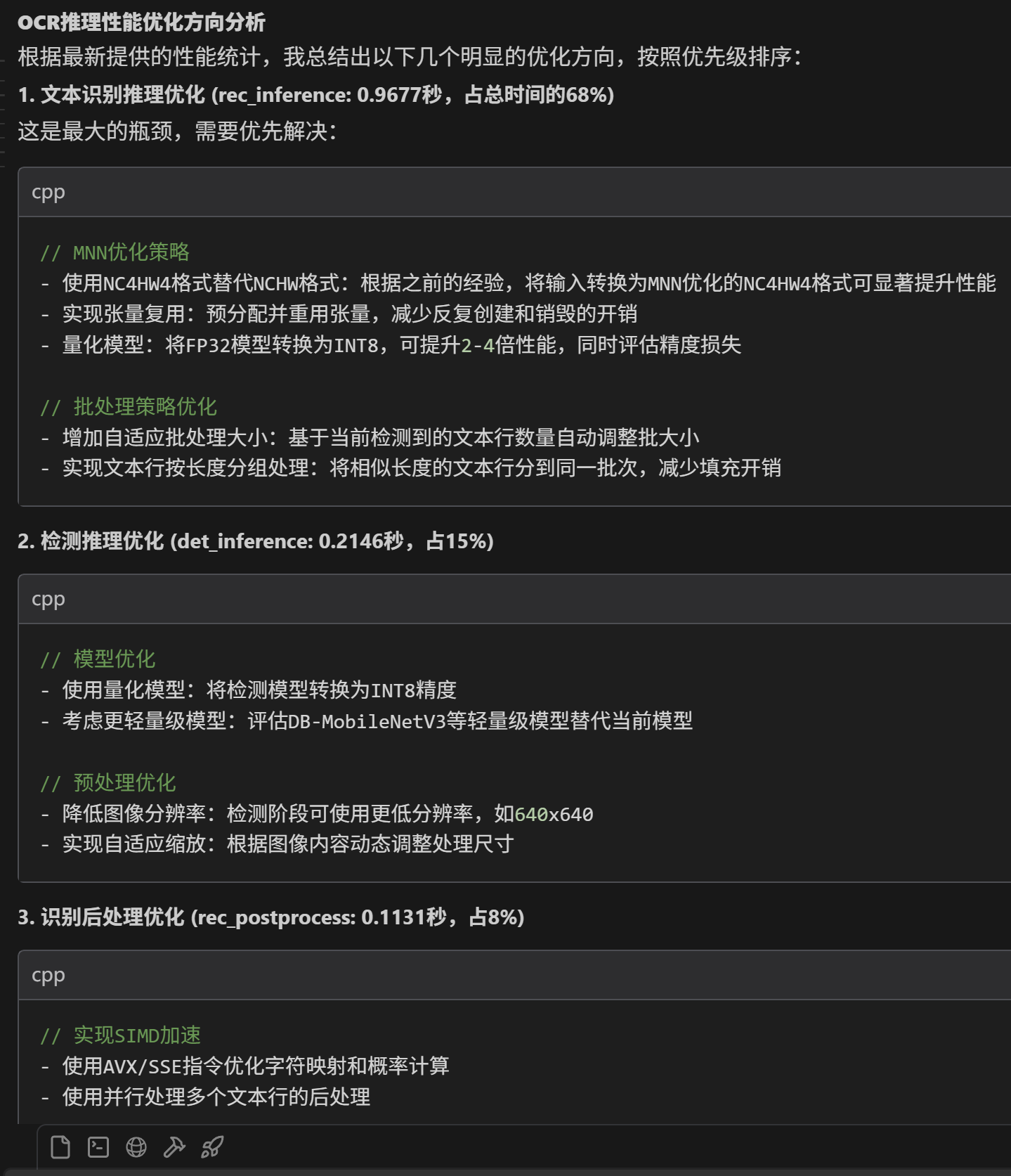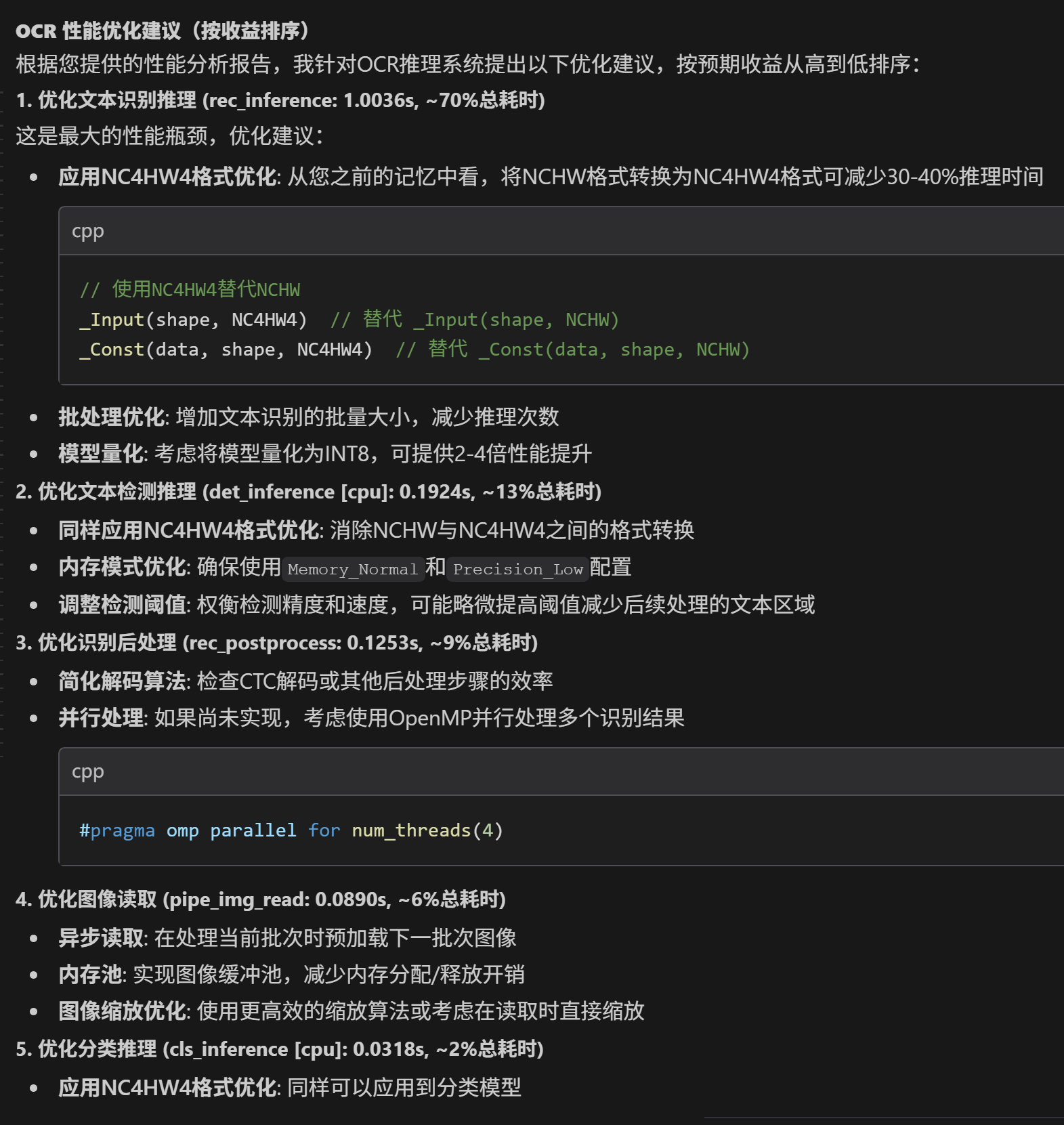 让大模型根据工程提供优化方法。 大模型一口气说了十个正确的大道理,关键时刻,可能还是依赖人的判断。 提供数据,询问怎么优化,他可以说十条建议,看起来都好有道理,能提供大量灵感: