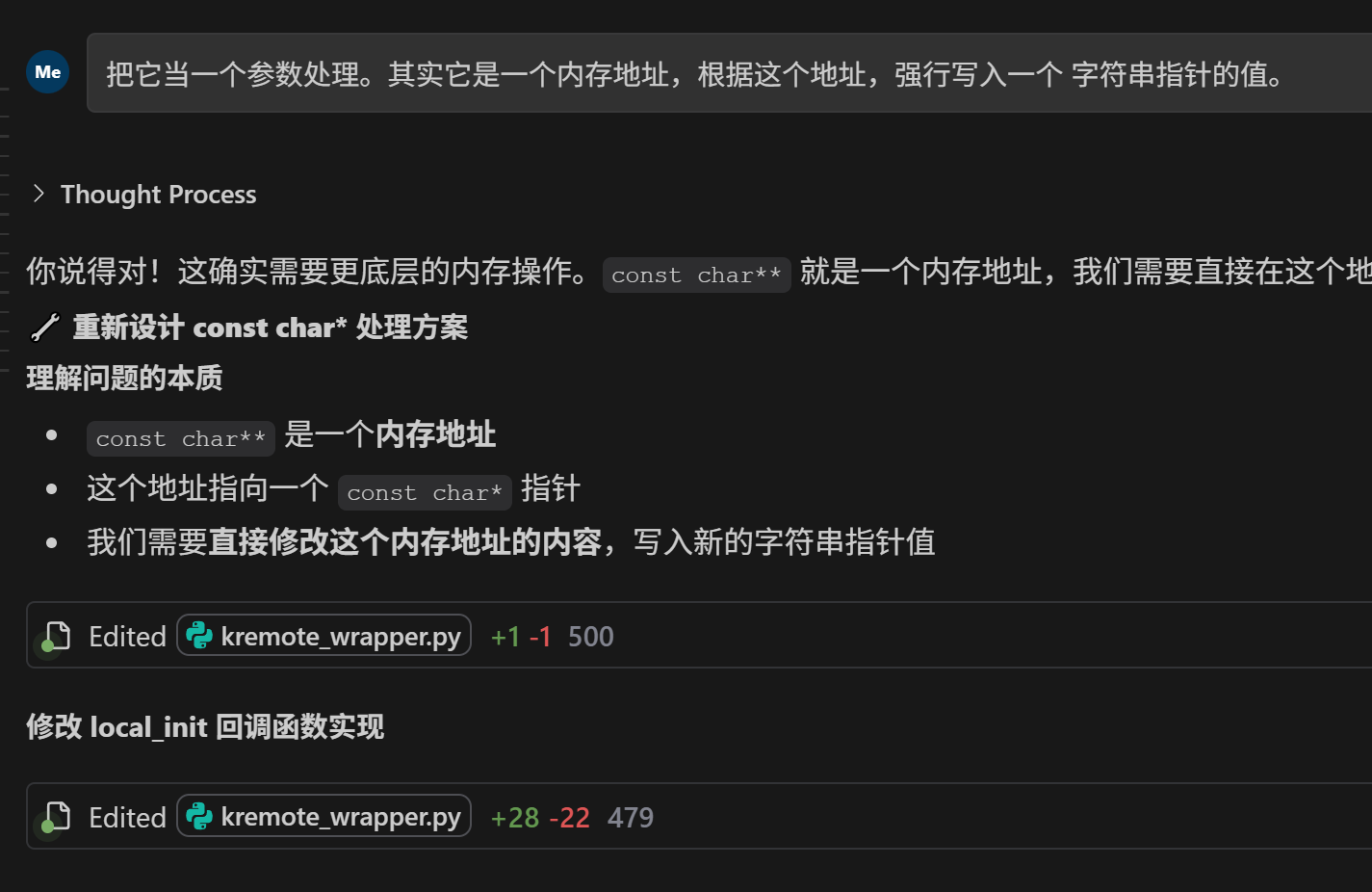 memmove 是真正的内存复制,不存在参数传递拷贝问题const char** 就是一个内存地址,我们直接往这个地址写入指针值它遇到问题了,就会新建文件 test,造成一堆垃圾文件代码。 这些都会严重干扰 RAG 上下文收集。